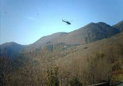 Travaux sur la ligne électrique moyenne tension d'Aston au village de Larcat. Tous les poteaux bois et les fils d'alimentation sont changés. Un groupe électrogène a permis l'alimentation en courant électrique du village, pendant la durée des travaux qui a duré une semaine. Dépose des fils électriques... Remplacement des poteaux avec l'aide d'un hélicoptère qui a effectué 28 rotations dans une matinée pour changer tous les poteaux |